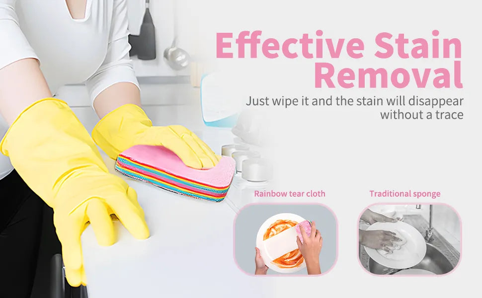 To clean, dampen the rainbow cloth and gently wring out excess water. Clean stubborn stains by applying more finger pressure.