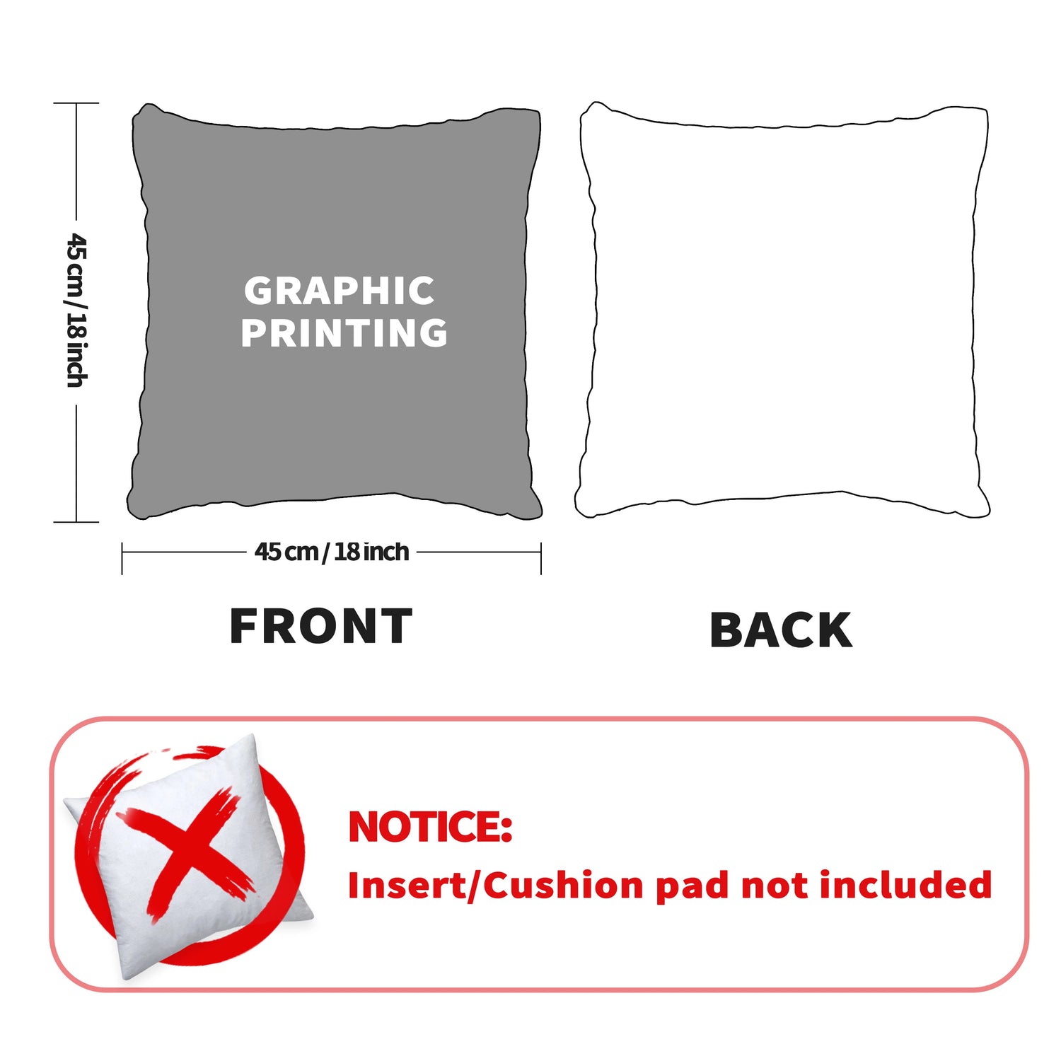 Single-sided printing. The pillow fill is not included.